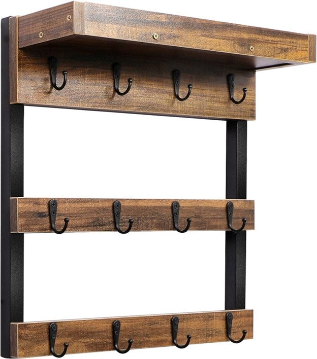- Made with High-Quality Materials: This rustic wood mug rack is built to last with its durable MDF and sturdy iron sides. Featuring 12 metal hooks, your teacups and coffee mugs will be securely stored. Say goodbye to cracks and hello to long-lasting use with this high-quality materials mug holder.